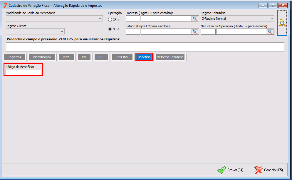 O sistema permite que você configure o cBenef em dois locais diferentes. Escolha a opção que melhor se adapta à orientação da sua contabilidade.